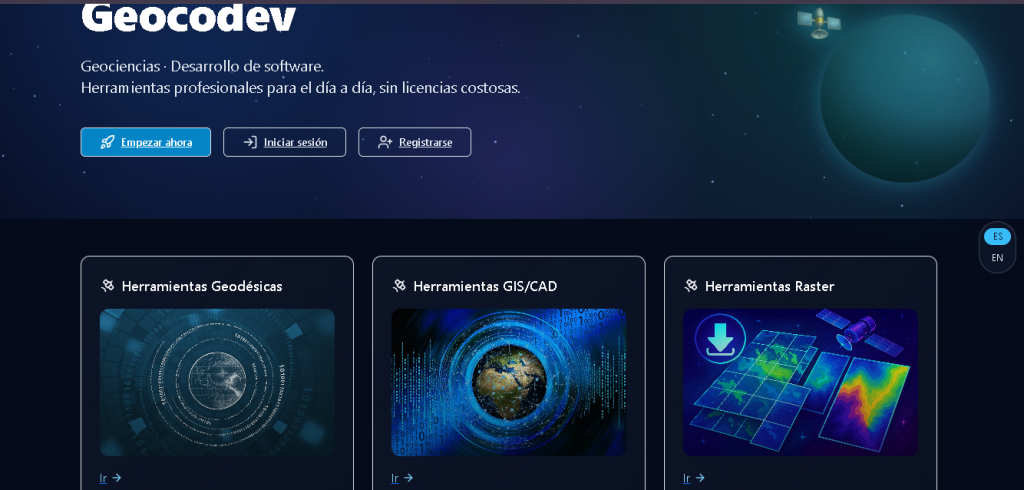 Geocodev es una iniciativa innovadora que integra las geociencias con el desarrollo de software, pensada especialmente para brindar soluciones prácticas y accesibles a profesionales del área técnica. Su principal objetivo es facilitar el trabajo en campos como la topografía, geomática e ingeniería, eliminando la necesidad de depender de licencias costosas y promoviendo el acceso a herramientas digitales eficientes desde una plataforma centralizada.